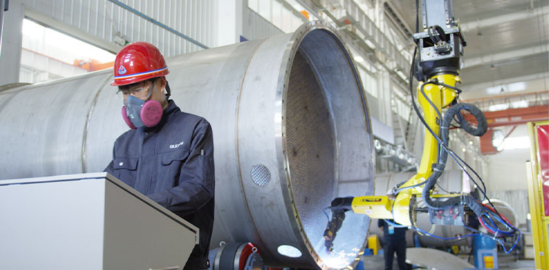 公司引進(jìn)臭氧發(fā)生室專(zhuān)用機(jī)器人焊接、管板焊機(jī)、激光切割機(jī)、機(jī)器人焊接等自動(dòng)化設(shè)備,自動(dòng)化水平進(jìn)一步提高。